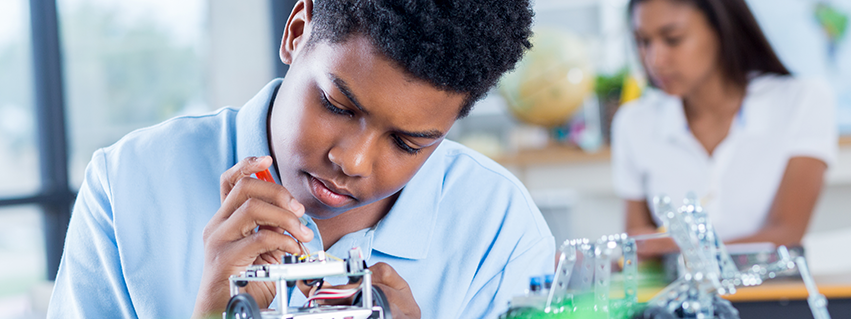 This program is offered to juniors and seniors. Students will focus on the installation and repair of electrical, hydraulic, pneumatic and digital controls that operate Automated Mechanical and Robotic Systems.